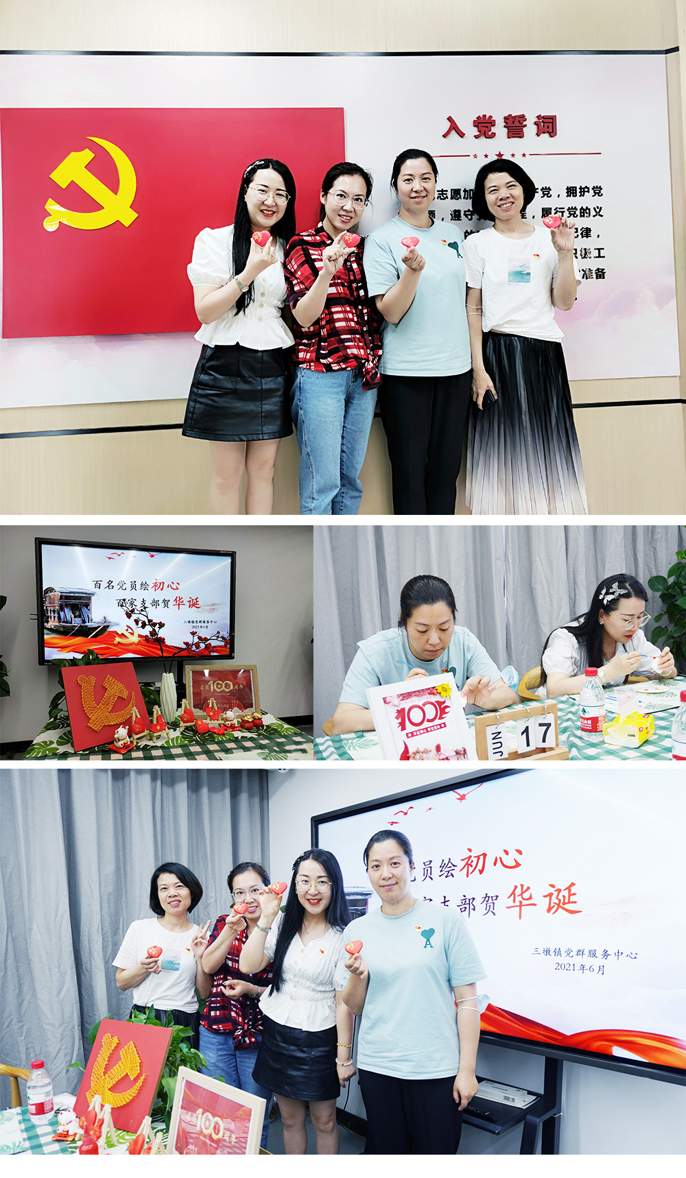 2021年6月17日,三墩鎮黨群服務中心舉辦“百名黨員繪初心,百家支部賀華誕”主題活動。本次活動組織全鎮機關、村社、兩新企業、黨建共建單位黨組織100家、黨員100名,用心描繪紅色初心,衷心祝福百年華誕。我公司各黨支部積極響應,派出黨務工作者楊哲野、金美青、應懿、季丹萍四位同志,參與本次活動。