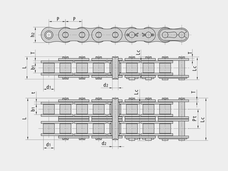 ● 高強度滾子鏈符合ISO、DIN、ANSI等標準,主要有SP系列高強度短節距滾子鏈、SH系列高強度短節距重載滾子鏈、DH-X3系列高性能滾子鏈;