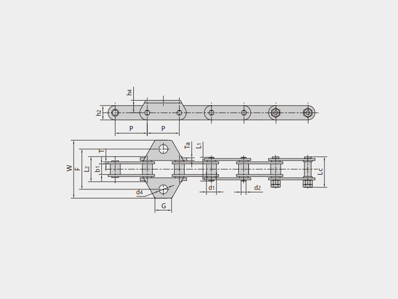 ● 與標準O形密封圈滾子鏈結構相同,外、內鏈節之間裝有O形密封圈,以防止使用過程油脂流失及雜物進入鏈條軸套間隙,適用于耐磨損要求較高且不能經常加油潤滑的使用環境。使用壽命是常規定鏈條的1倍以上。